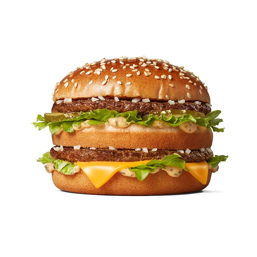 Він один, але в ньому все, що ти так любиш: соковита котлета з яловичини, два шматочки сиру ементаль і томату, свіжий салат, цибулька й наш культовий соус «Біг Тейсті» в рум'яній булочці з кунжутом.