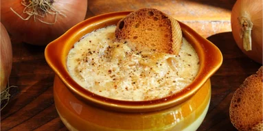 Цибулевий суп — традиційна французька страва з подрібненої цибулі та яловичого бульйону, підсмаженого хліба та натертого розплавленого сиру.