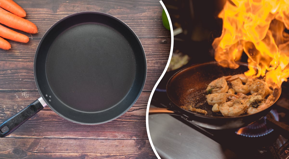 Головне – не використовувати для цього абразивних миючих засобів з кислотами, лугами і хлором у складі та металевих щіток. У жодному разі не можна опускати в воду розпечену сковорідку. Це може пошкодити покриття.