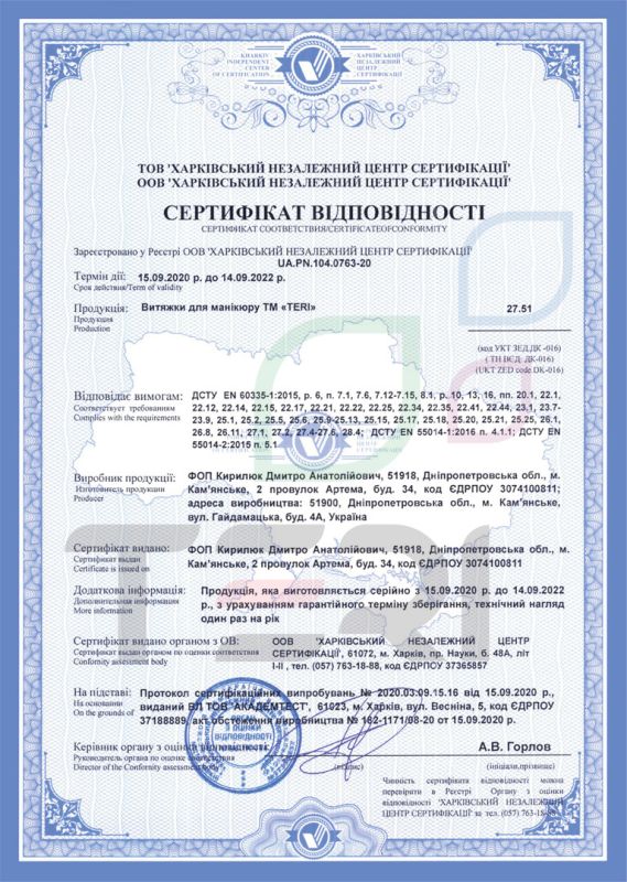 У результаті ви отримуєте сертифікат, який дозволяє офіційно продавати продукцію на ринку та підтверджує якість і безпеку товару. Середня вартість сертифікату відповідності сьогодні складає приблизно 5000 грн. Це разова витрата за виконання усіх дій фахівців під ключ.