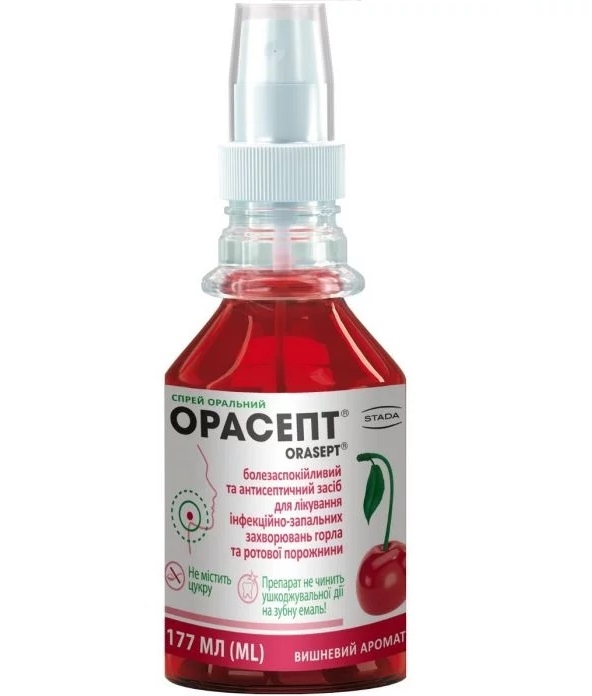 Орасепт спрей ор. 1.4 % по 177 мл у флак. ; Категорія. При захворюваннях ротової порожнини Від болю у горлі для дітей Спрей для горла Для горла ; Торгова назва.