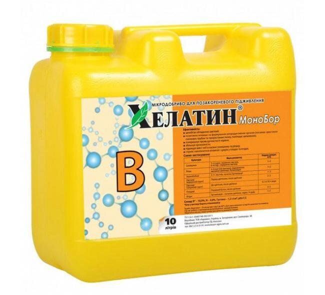 Хелатин Залізо – водорозчинне добриво на основі мікроелемента залізо у доступній формі у вигляді хелатів. Призначено для овочевих, ягідних, баштанних, плодових, зернових, технічних, бобових культур, винограду, квітів, декоративних дерев та чагарників.