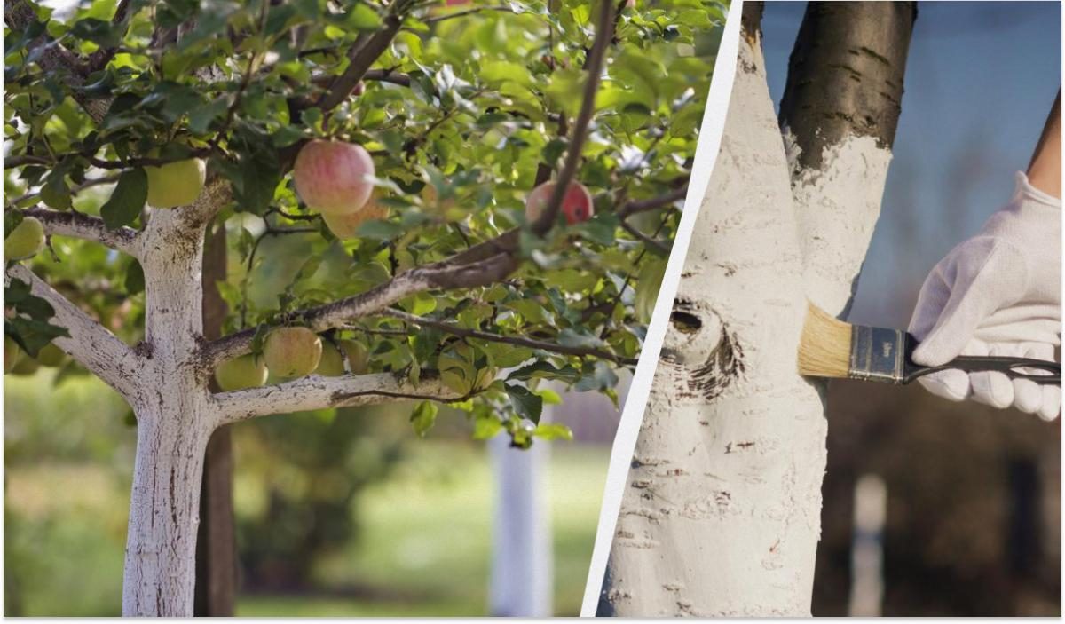 Найпоширеніший варіант – вапно Вапно, яке розводять у воді, часто використовують для побілки дерев. Воно має відбілюючий ефект та захищає кору від перегріву та пошкоджень.
