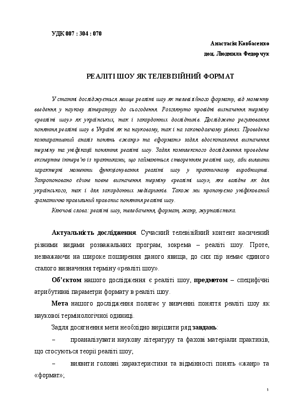 Анотація. Стаття присвячена аналізу популярного телевізійно- го феномену — реаліті-шоу. Виявлені типи для реаліті-шоу україн-.
