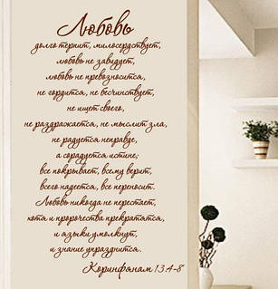 Любов довготерпить, любов милосердствує, не заздрить, любов не величається, не надимається, не поводиться нечемно, не шукає тільки свого, не рветься.