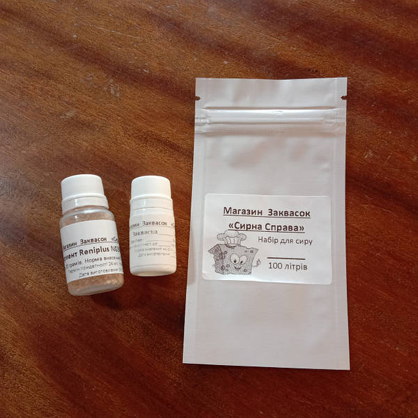 До комплекту входить: 1.Заквасочна культура молочнокислих бактерій для. сиру Бринза. 2. Фермент молокозгортаючий. Склад заквасочної культури:.